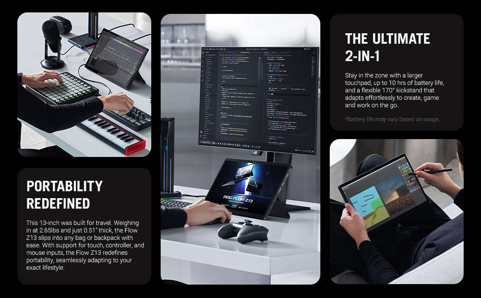 THE ULTIMATE 2-IN-1 – Stay in the zone with a larger touchpad, up to 10 hrs of battery life, and a flexible 170° kickstand that adapts effortlessly to create, game and work on the go.