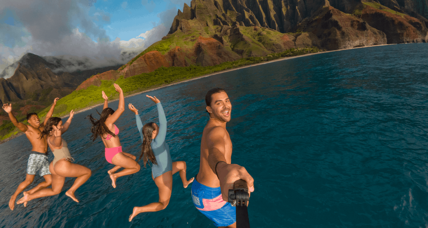 Folding extension arm acts as a handheld boom for selfies, follow-cam footage and getting closer to the action