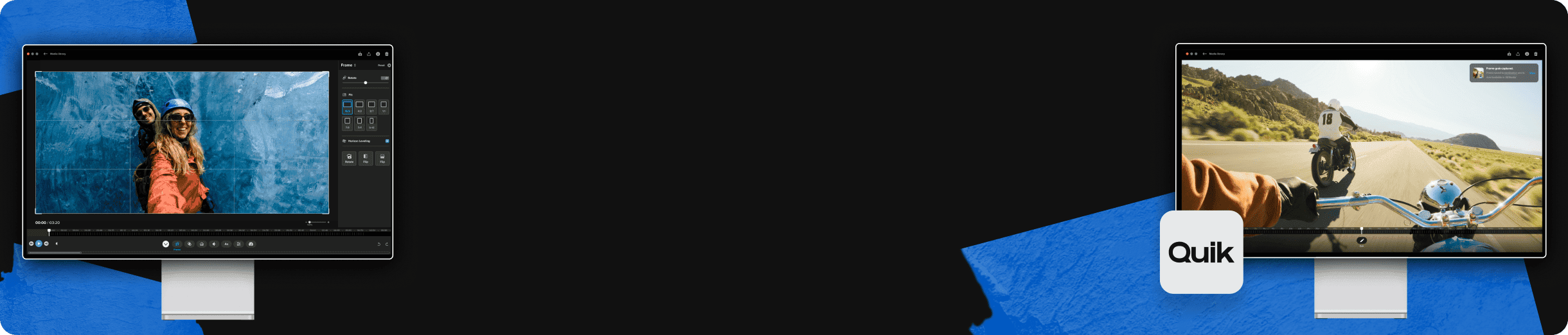 With a tap, switch between Wide Screen or new Vertical Capture depending on whether you’re shooting for traditional wide-screen playback or social media. Or capture in Full Frame and decide later in the Quik app for maximum versatility.