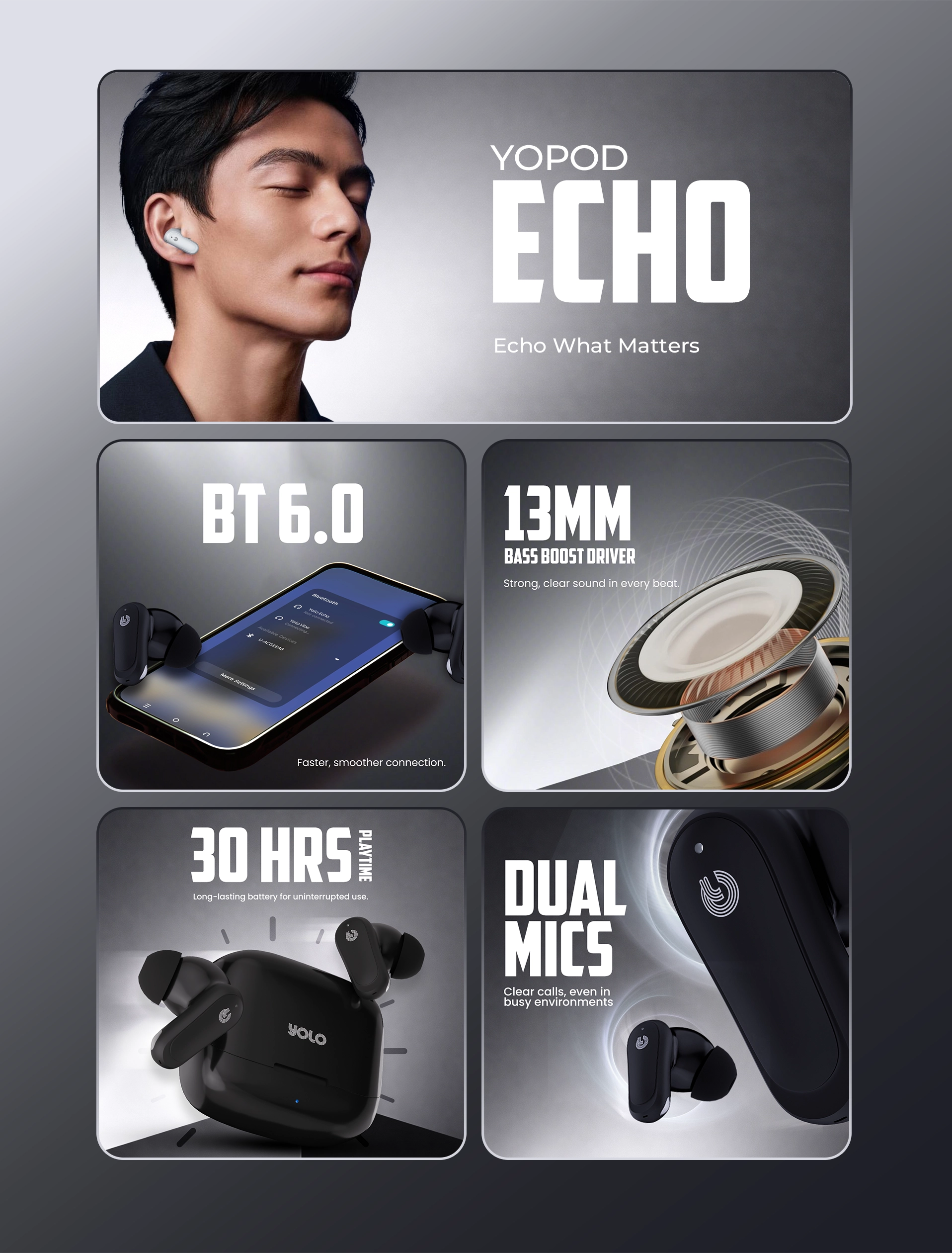 Yolo YoPod Echo Bluetooth 6.0 Earbuds